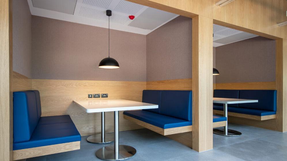 Manufacture and installation of bespoke joinery across multiple university interiors as part of a phased refurbishment programme.