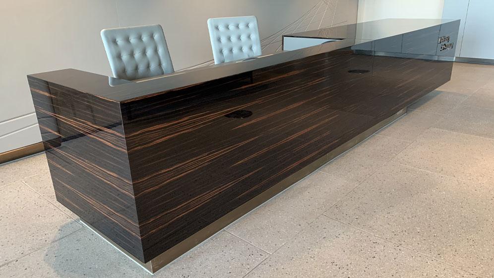 Delivering high-end, purpose-built joinery to support client-facing and operational spaces within a global corporate workplace.