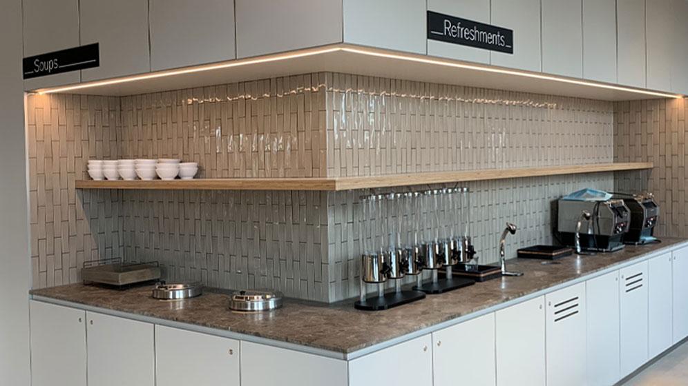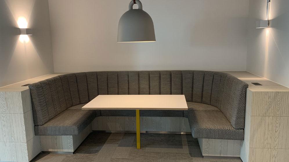 Martek delivered bespoke joinery across several floors, contributing to a range of key spaces including impressive client-facing areas, on-site catering facilities and workplace breakout zones. The scope included tailored booth seating with integrated live wall dividers, tea points and associated fitted joinery throughout. All elements were manufactured and installed to a high standard, with an emphasis on material quality, durability and consistency of finish across the building.